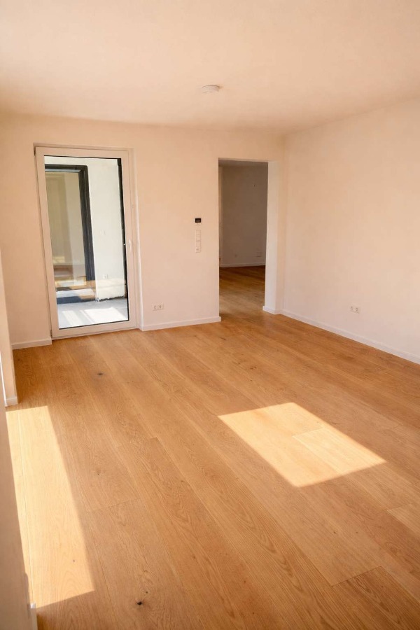 Sämtliche Böden in den Wohn- und Schlafbereichen werden mit hochwertigen, Eichendielen (ca. 2,20 m x 25 cm) belegt. Die Bäder werden modern gefliest und verfügen über ebenerdige Walk-In-Duschen. Sämtliche Bäder werden mit Armarturen von Hans Grohe ausgestattet und erhalten eine zusätzliche Handtuchheizung.