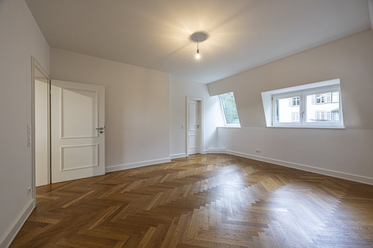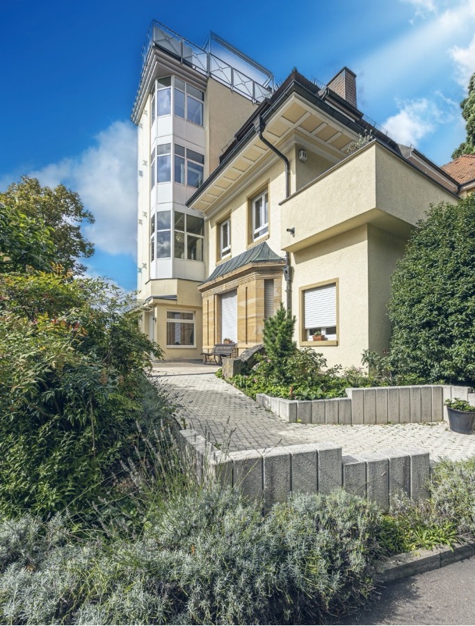 Dieses einmalige, luxuriöse Penthouse mit unverbaubarem Traumblick mit optionalem Einliegerbereich im Hanggeschoss befindet sich in einem ca. 1909 errichteten, prestigeträchtigen Anwesen in exponierter, ruhiger Lage von Freiburg Herdern.