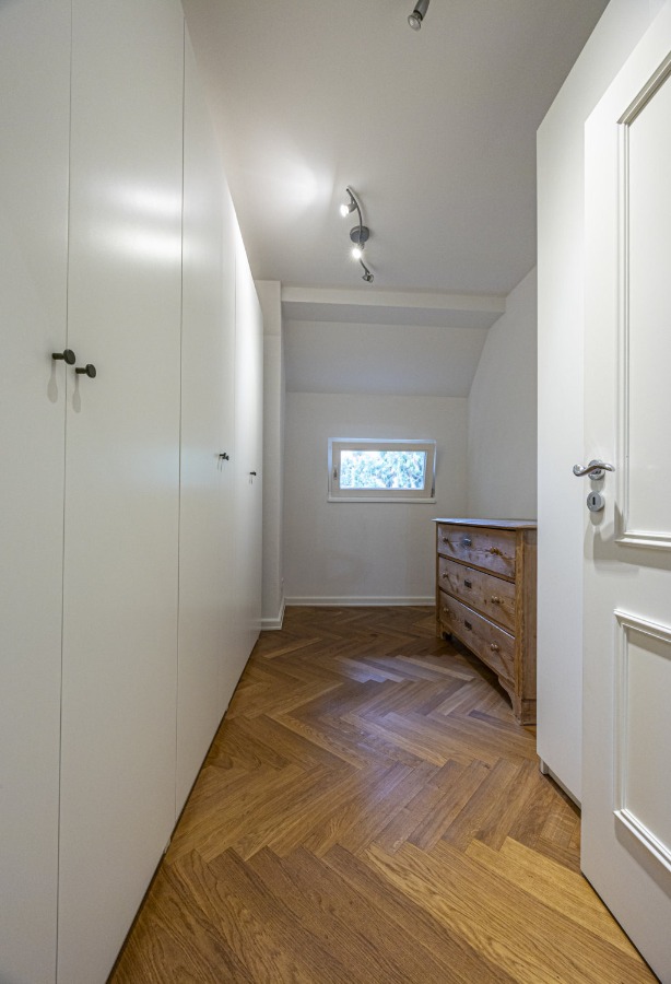 Die Abtrennung erfolgt über eine hochwertige Doppelschiebetüre, so dass das Zimmer auch separiert, z.B. als zusätzliches Schlafzimmer genutzt werden kann.