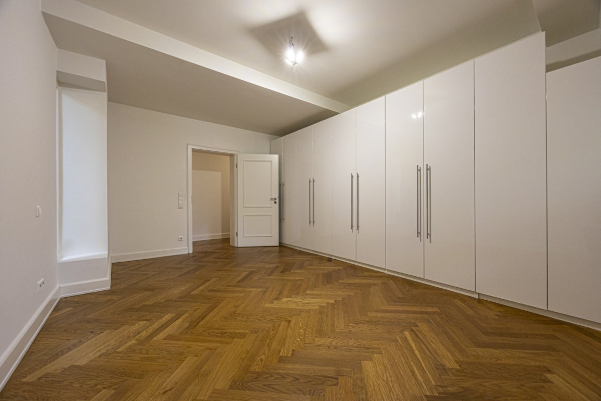Die gesamte Wohnung wurde bei der Revitalisierung mit Eiche-Fischgrät-Parkett belegt und verfügt in sämtlichen Bereichen über eine Fußbodenheizung.
