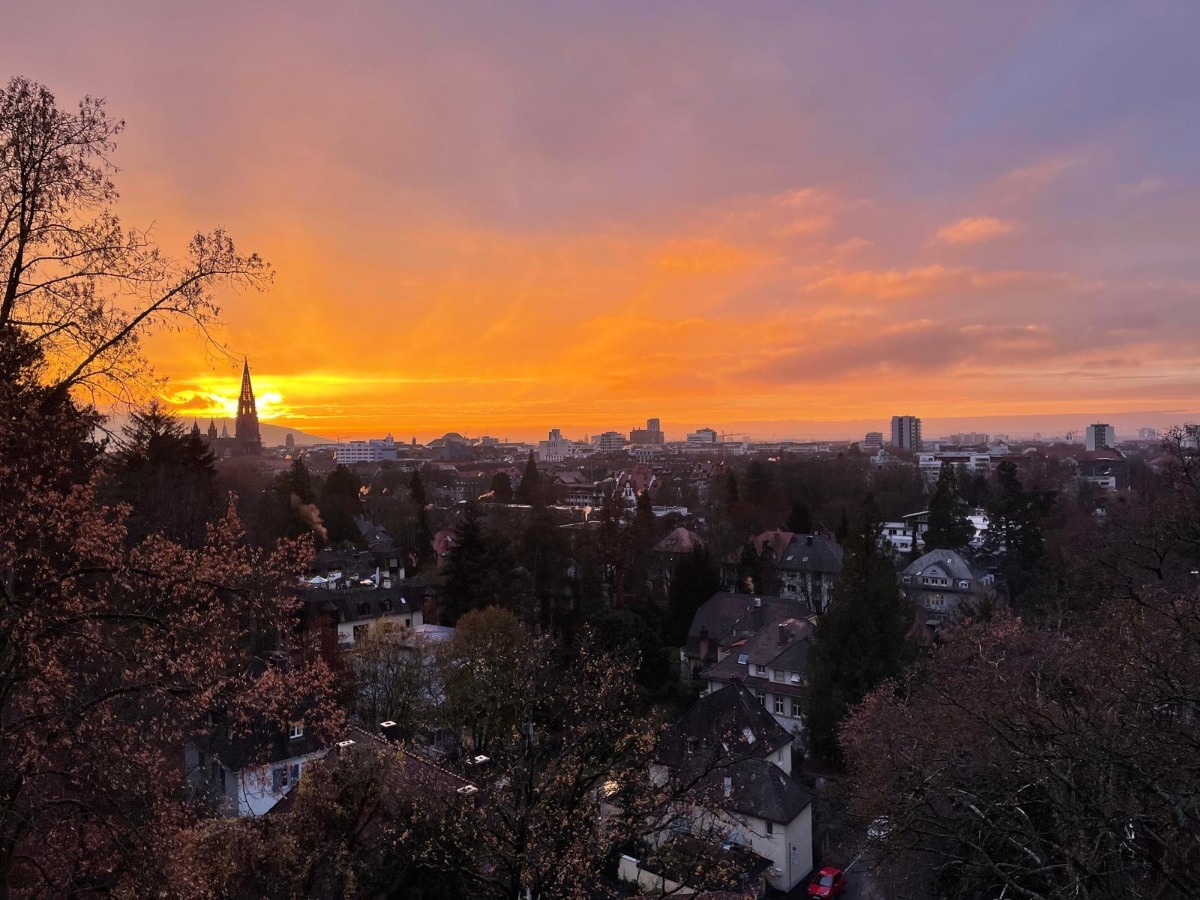 Zur Freiburger Innenstadt sind es nur wenige Fußminuten. Unmittelbar hinter dem Haus beginnen Rad- und Wanderwege in den Schwarzwald.
