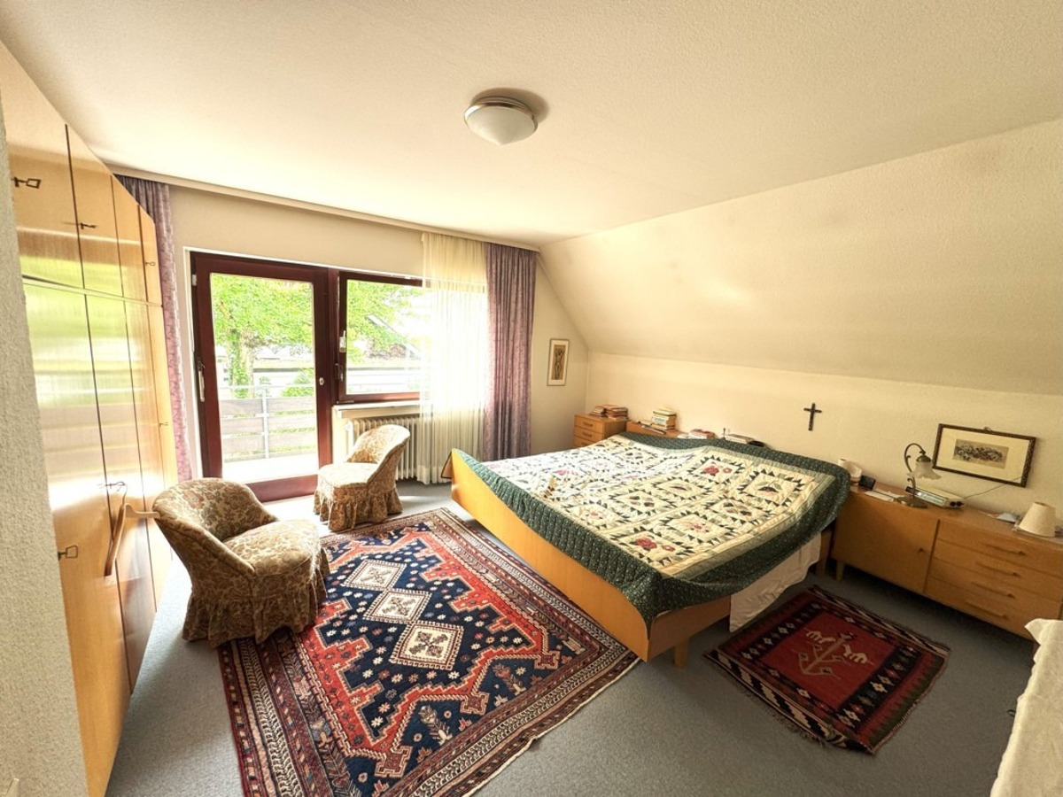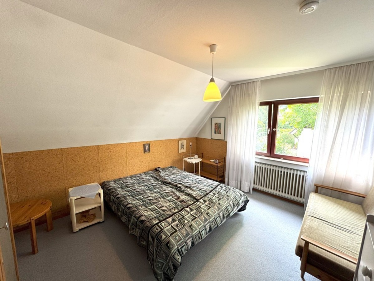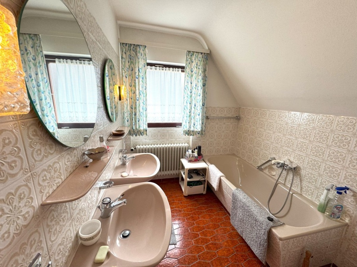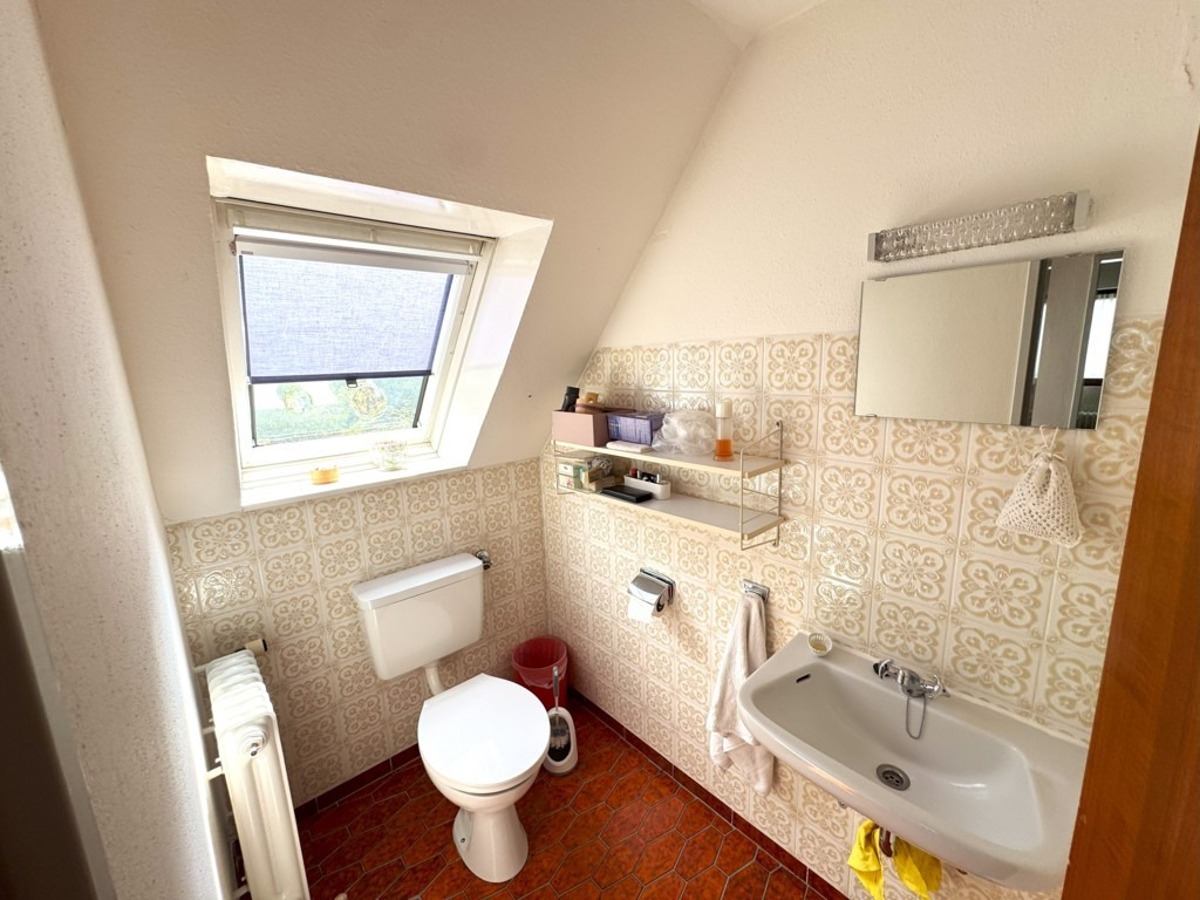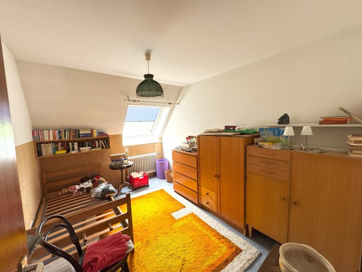 Im Dachgeschoss befinden sich eine Diele, 3 Kinderzimmer, ein separates WC, das Badezimmer mit Dusche, Badewanne, Doppelwaschbecken und Fenster sowie das großzügige Schlafzimmer mit Balkon.