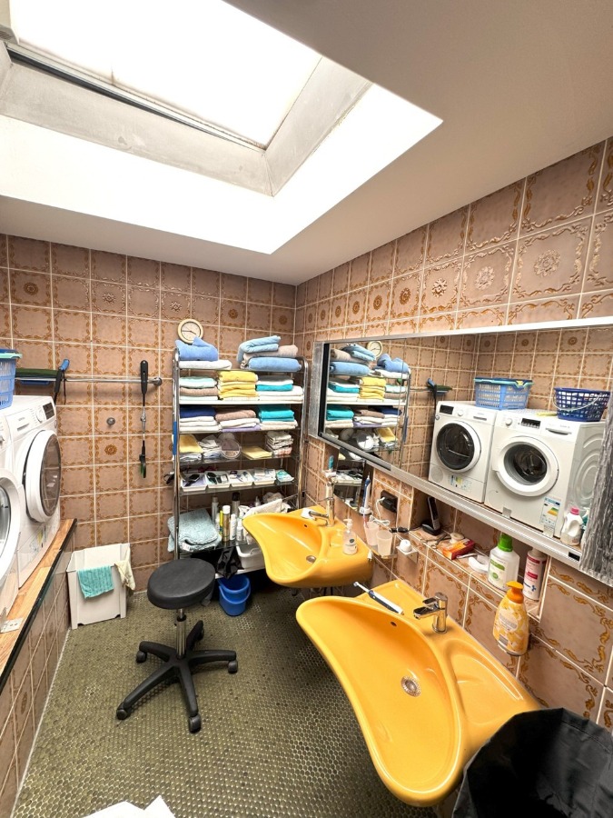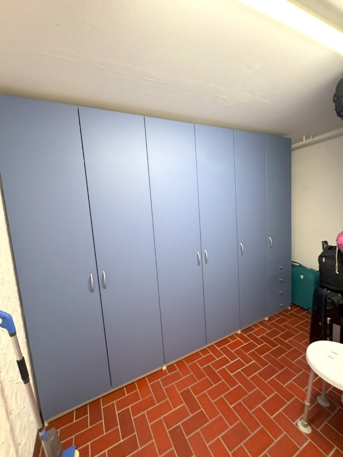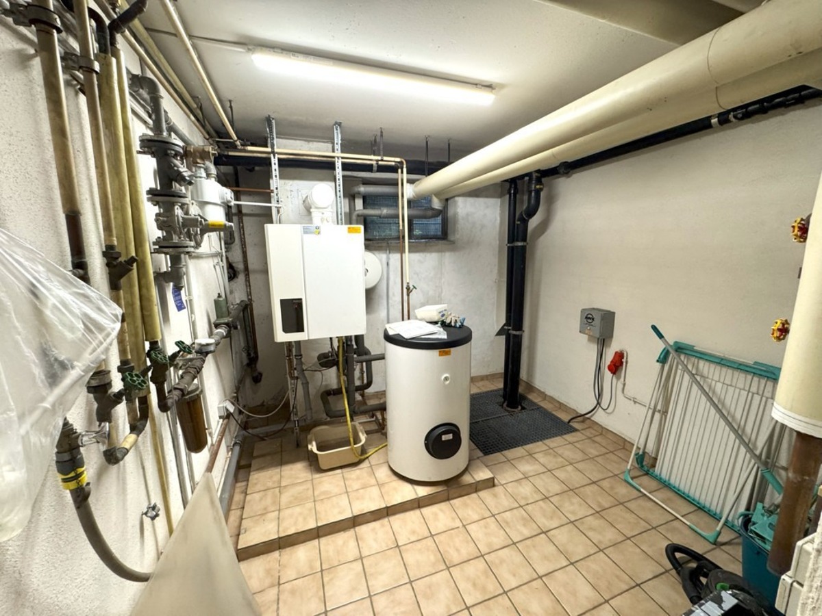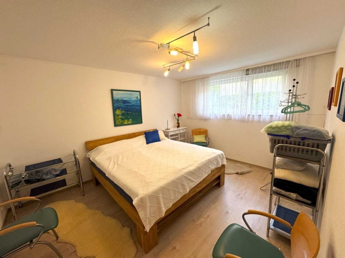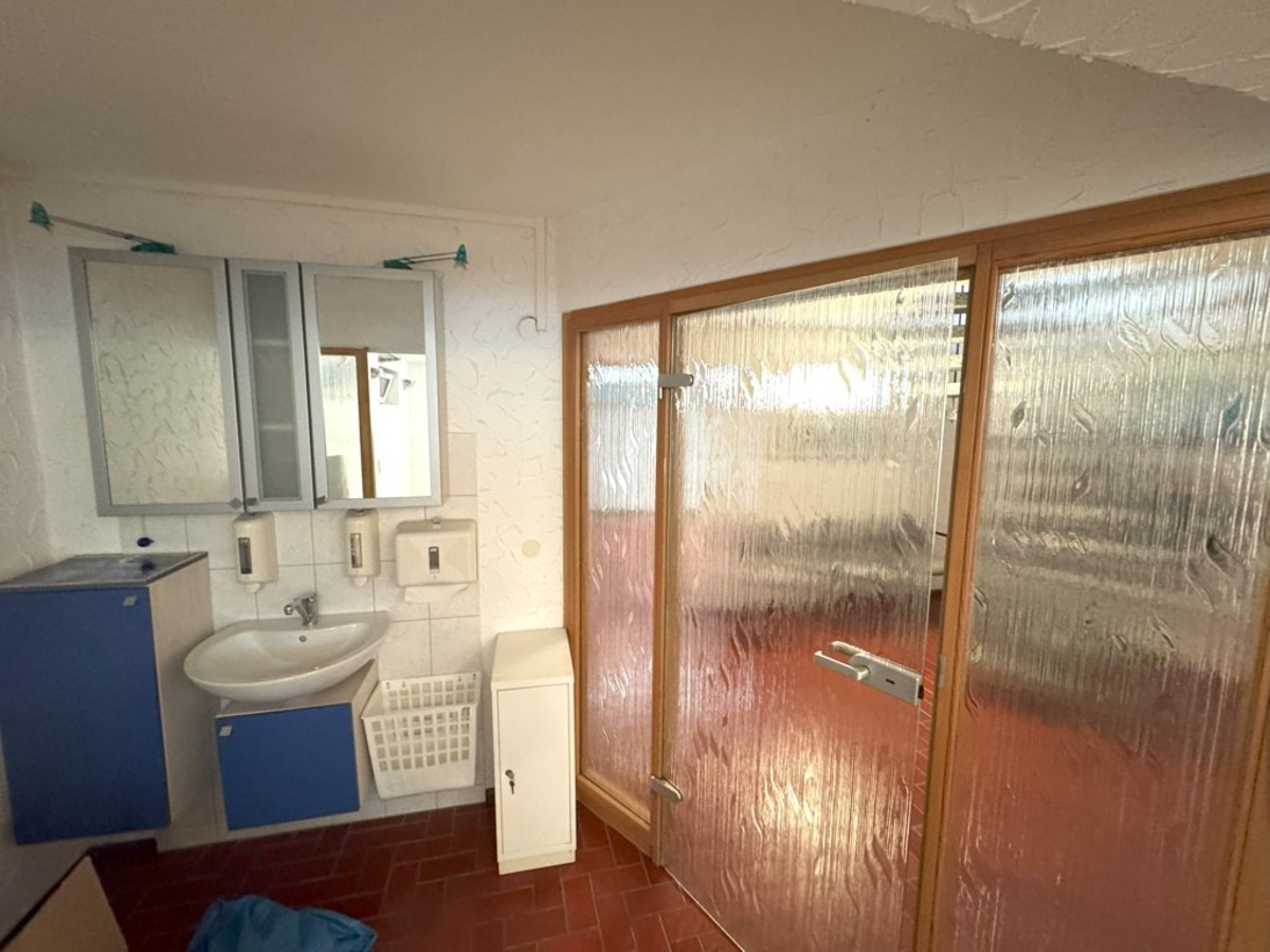 Im hellen Unterschoss / Souterrain verfügt das Haus ebenfalls über eine großzügige Diele, ein weiteres Schlaf-/Gästezimmer, einen großzügigen Hobby- oder Praxisbereich (ehemals Praxis) mit Übergang zu einem weiteren Raum (mit Zugang zum damals geplanten, vorbereiteten Schwimmbad), ein Duschbereich, ein Ankleide bzw. Kleiderschrankbereich mit Vorbereitung einer Sauna, einen Hauswirtschaftsbereich, den Keller/Weinkeller sowie den Heizraum mit erneuerter Gas-Zentralheizung.