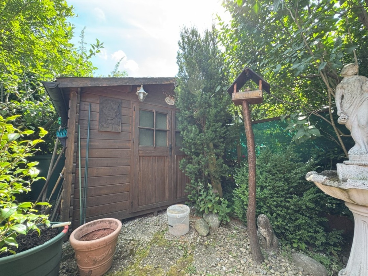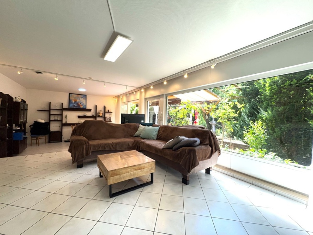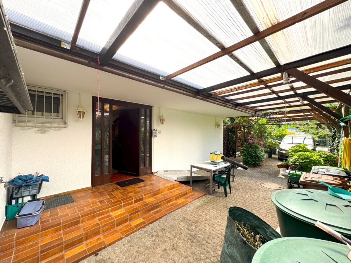 Der Hofbereich ist als Pergola / Carport überdacht. Der Bungalow verfügt über eine großzügige Einzelgarage mit Werkstattbereich.